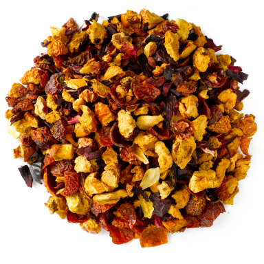 Die beliebte Erdbeere weckt auch als Früchtetee das Gefühl der ersten Sommertage. Die Kombination mit Hibiskus und Hagebutte gibt den Beeren eine weniger süße Note und rundet den Geschmack ab.
