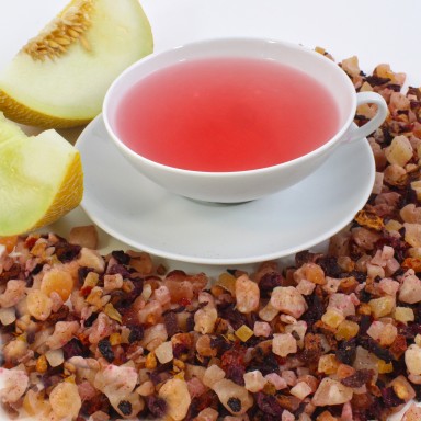 Zutaten: gezuckerte Melonenwürfel, Hagebutte, gezuckerte Papaya- und Ananasstücke, rote Bete, Apfelstücke, Aroma