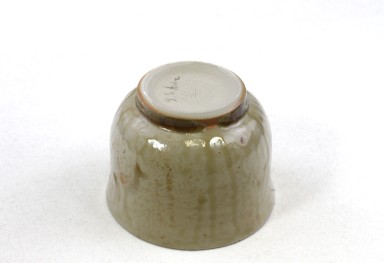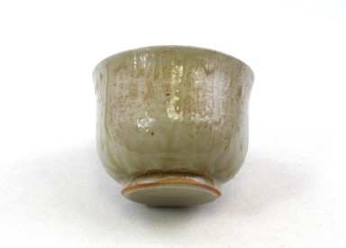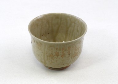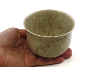 Glasiertes Steinzeug mit braun Flecken und orangefarbenen Kanten.