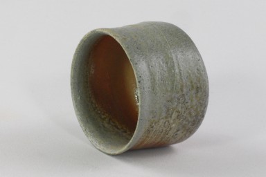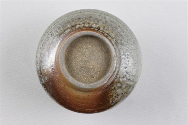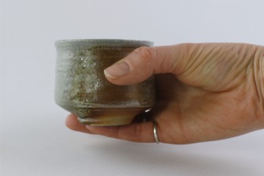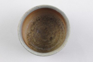 Diese ansprechende Teeschale ist innen und außen glasiert, hat eine leicht angeraute Oberfläche und ist in Grau und Rotbrauntönen gestaltet.