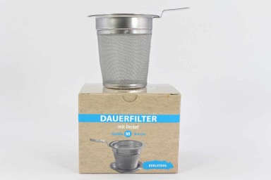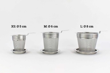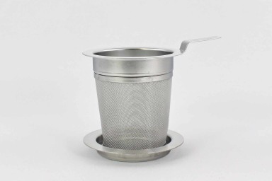 Ein qualitativ hochwertiger Dauerfilter aus Edelstahl mit einer kleinen Ablageschale. Füllen Sie einfach die gewünschte Teemenge in das Sieb und setzen dieses in eine Tasse oder in eine Kanne. Die Ablageschale kann dabei zugleich als Deckel verwendet werden, damit der Tee während der Ziehzeit nicht abkühlt. Anschließend lassen Sie das Sieb kurz abtropfen und stellen es auf die Ablageschale. Die Größe des Siebes bietet dem Tee viel Platz zur optimalen Entfaltung des Aromas. Zugleich ist das Gewebe dicht genug auch für feinporigen Tee. Dadurch eignet es sich für die Zubereitung unterschiedlichster Tees.